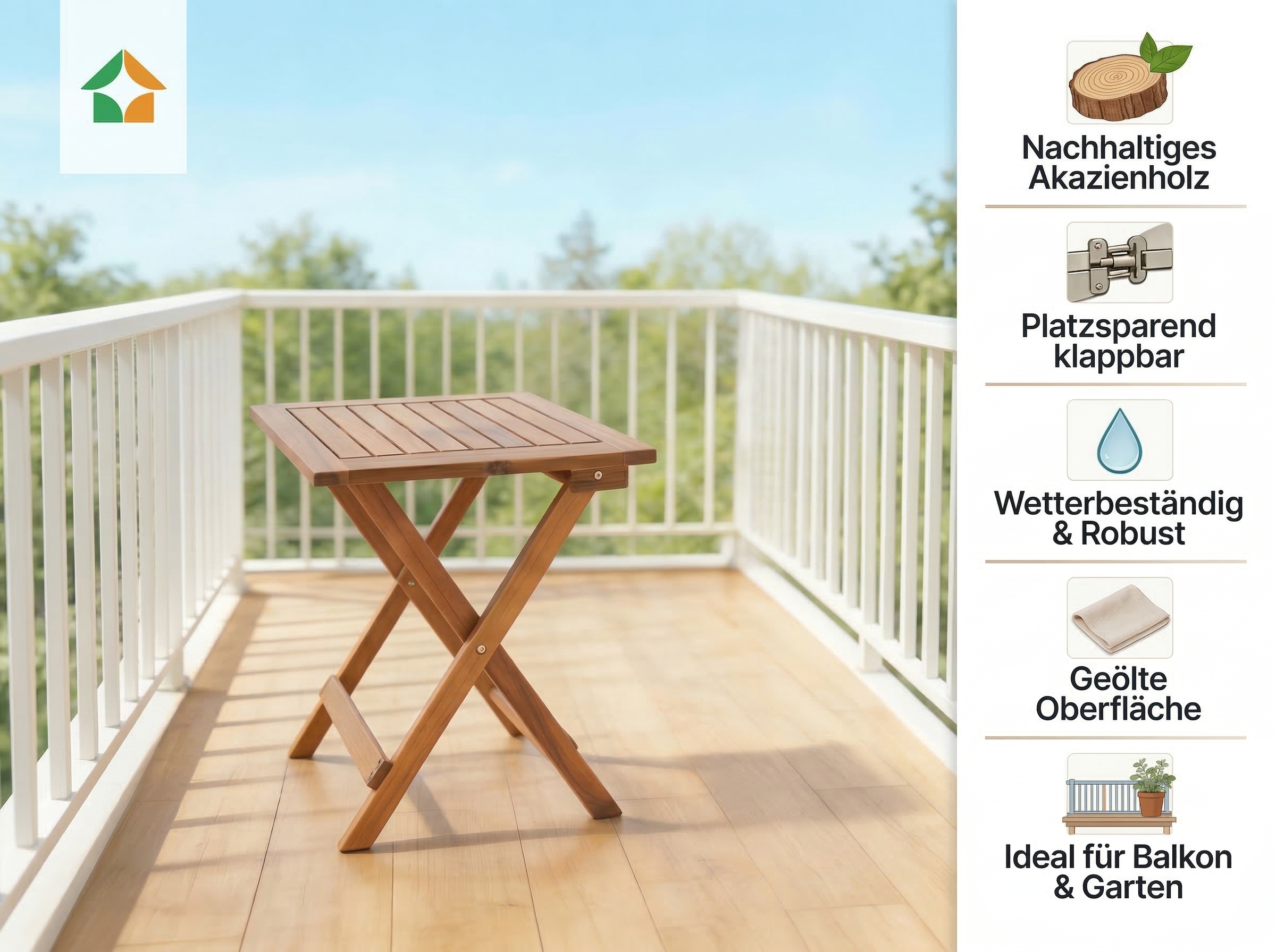 Balkonfläche ist meist knapp – daher zählt jeder Zentimeter. Genau hier spielt der 58 cm Klapptisch aus Akazienholz seine Stärken aus.